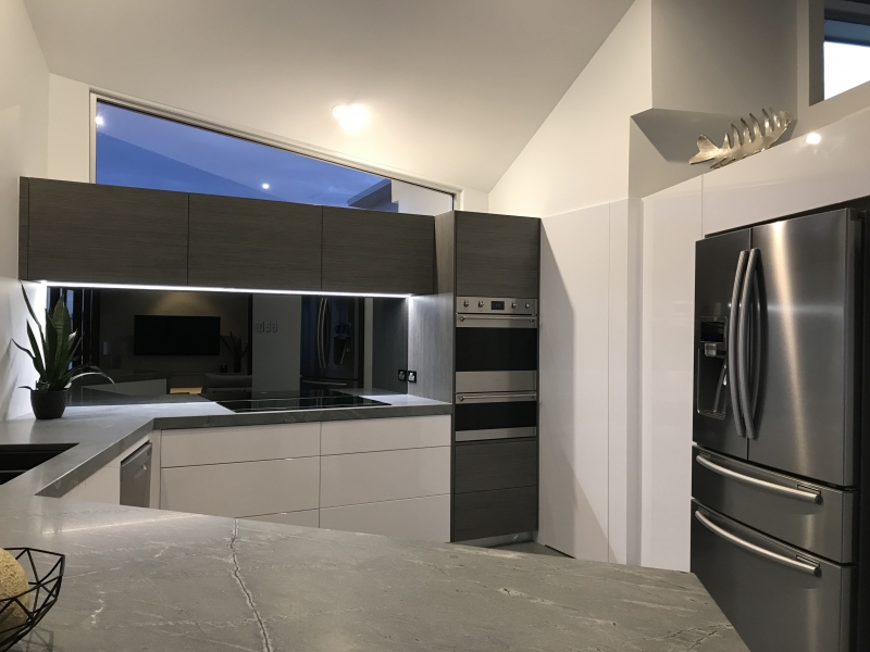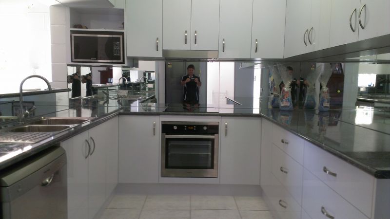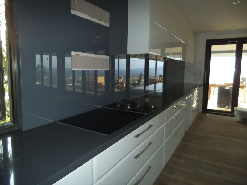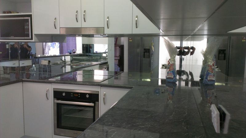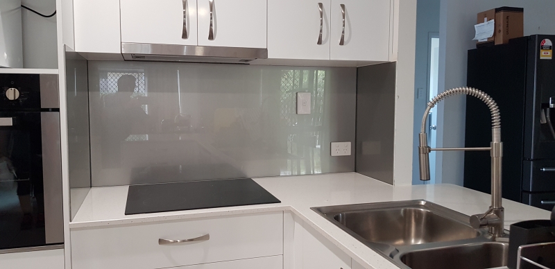 Grey Miramax. Toughened mirror like glass used behind Gass & Electric cooktops |